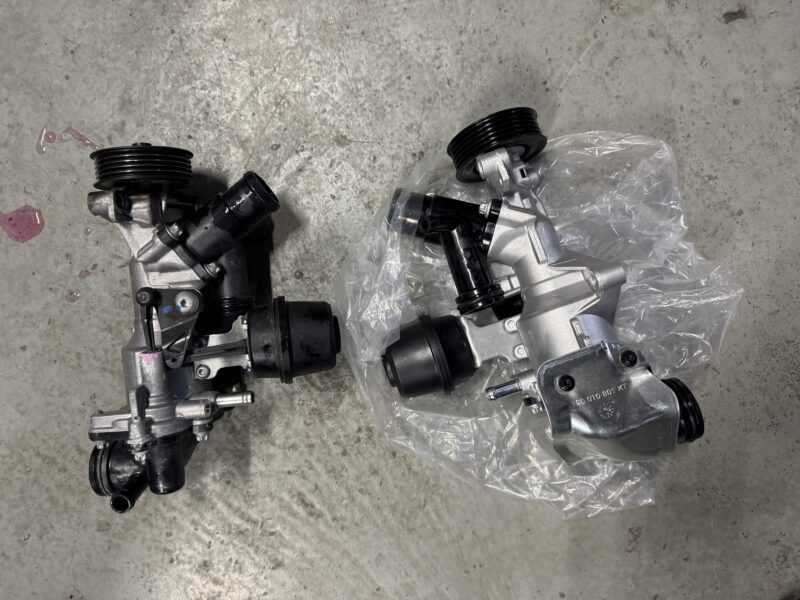 ウォーターポンプ交換です。他店にて最近交換したばかりとの事です。ピンキリの社外品です。交換に伴う技術料、消耗品が2倍かかることを思えば信頼できる少し高めの部品を使用した方がいいと思うのですが。